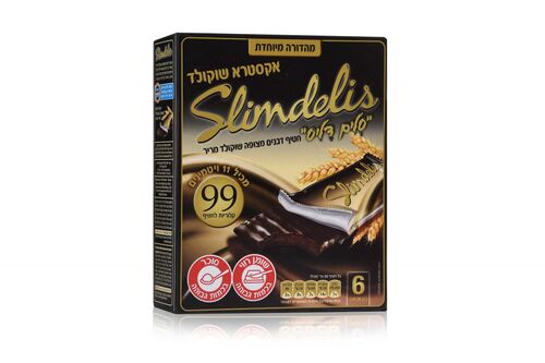 חטיף סלים דליס דגנים מלאים מצופה שוקולד מריר 6 יח'