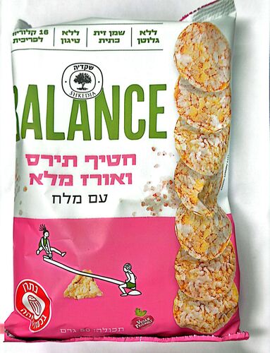 חטיף תירס ואורז מלא עם מלח 50 גר' שקדיה