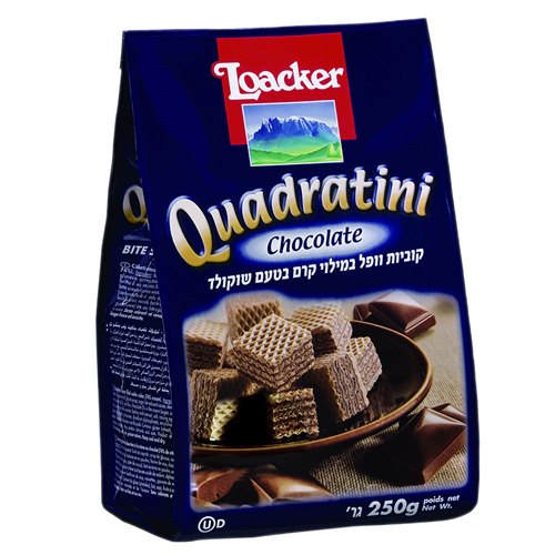 קוביות וופל לואקר פריך מילוי קרם קקאו ושוקולד 250 גרם